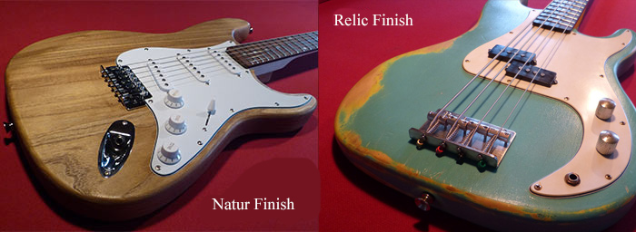 Kunst trifft auf Instrumente Massiv-Tonholz (Korpus meist Erle oder Esche, Hals Ahorn)